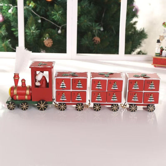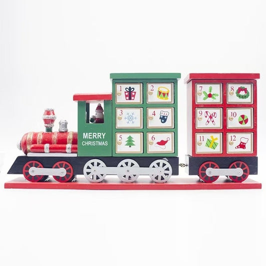 Christmas Train Wooden Advent Calendar Countdown with 24 Drawers
