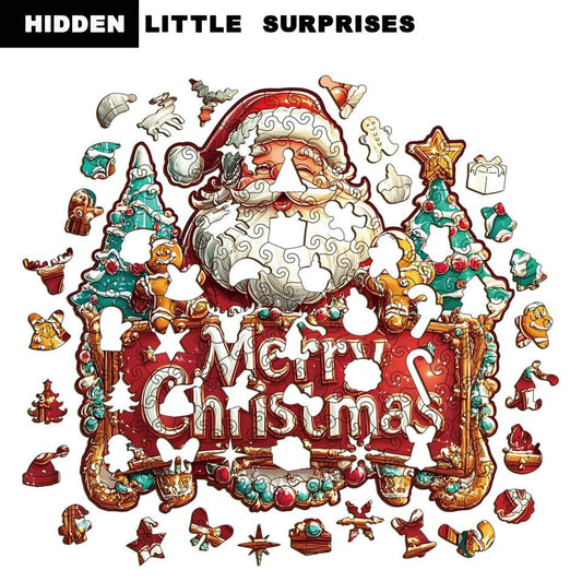 Santa Merry Christmas Banner Wooden Jigsaw Puzzle
