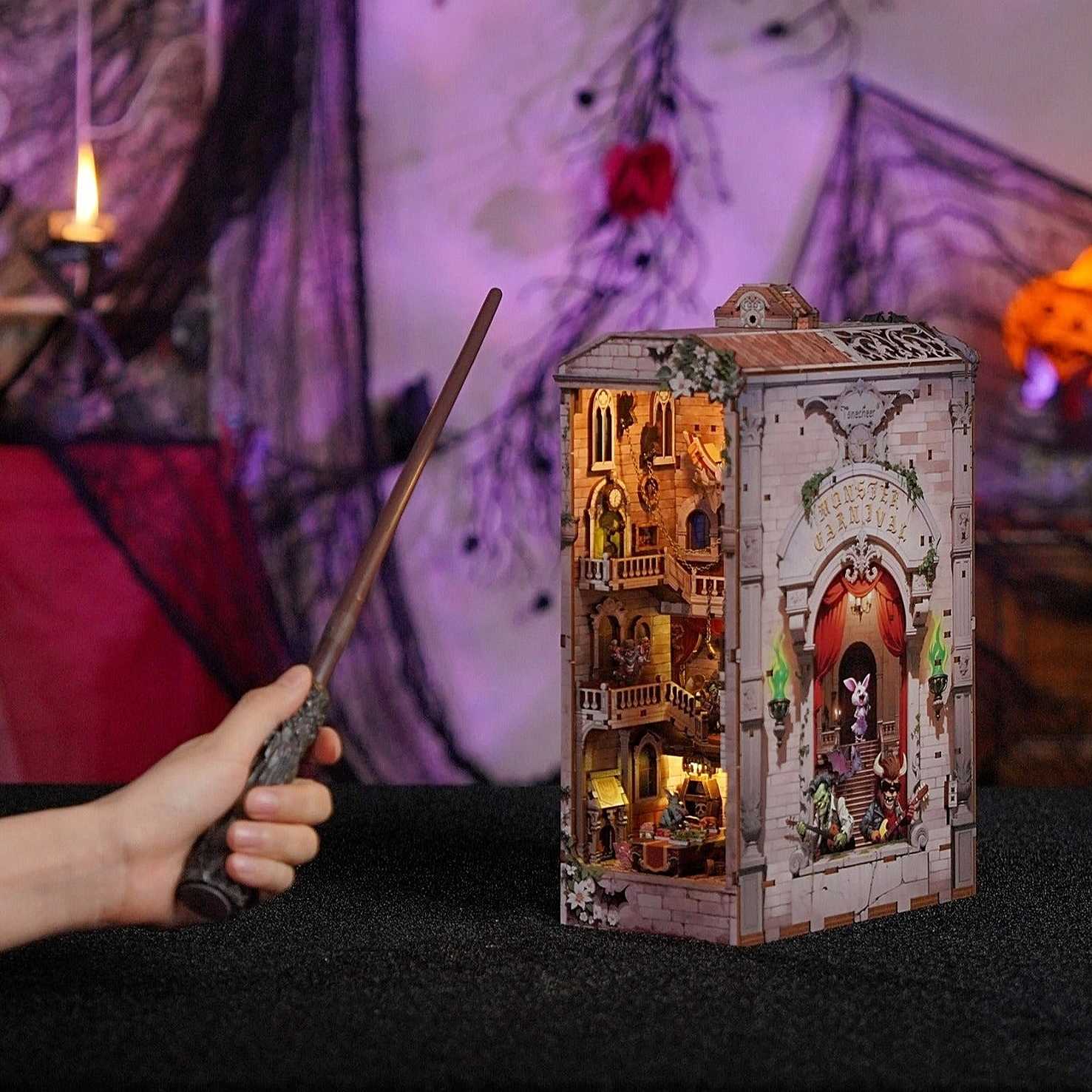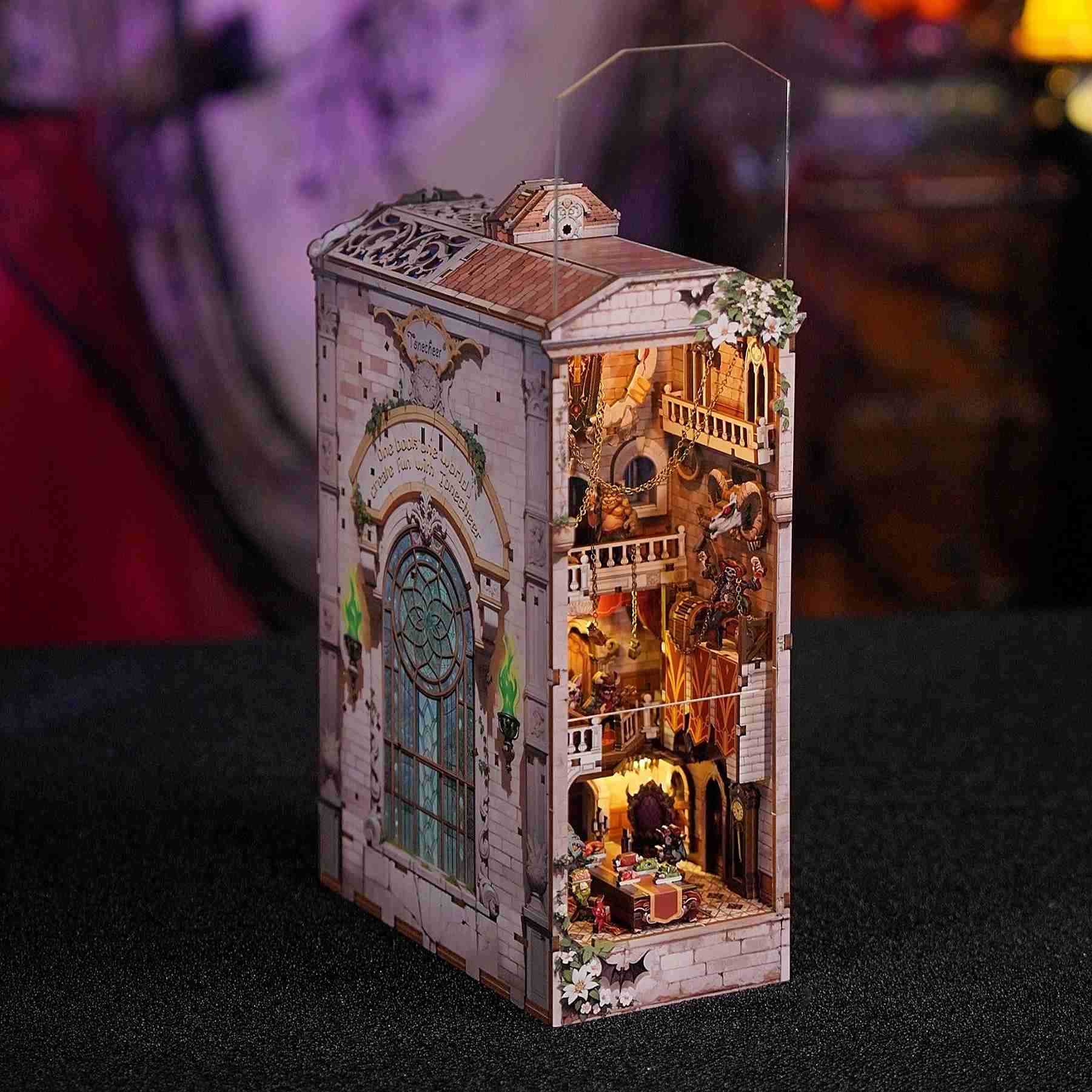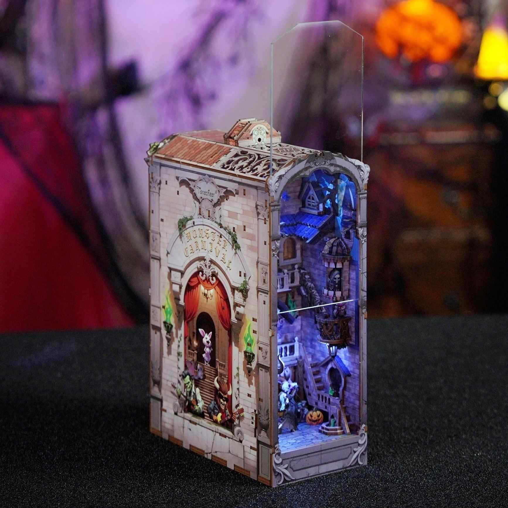 Enter a world where eerie melodies echo through ancient halls and moonlight reveals the secrets of the night. The Monster Carnival DIY Book Nook Shelf Insert brings to life a double-sided miniature castle—a hauntingly detailed masterpiece that turns your bookshelf into a portal to a mysterious carnival of monsters.