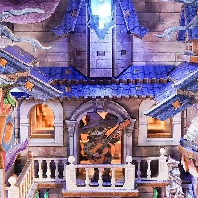 Each wooden piece fits together with precision, requiring no glue for most parts. The step-by-step illustrated manual ensures a smooth building experience. The dust-protection cover keeps your creation pristine while displaying every haunting detail.