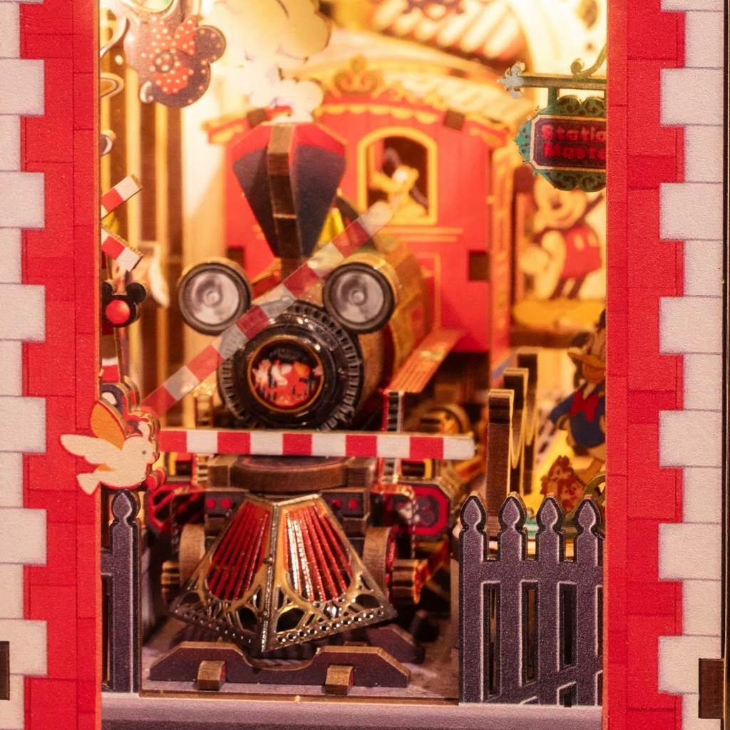 Celebrate the joy of Disney with the Mickey Land DIY Book Nook Kit. Featuring Minnie Mouse, Mickey Mouse, Daisy Duck, and a whimsical train station scene, this enchanting bookshelf insert combines Victorian-style architecture with the magic of Disney storytelling. A perfect blend of creativity, craftsmanship, and nostalgia, this kit is ideal for Disney fans, miniature lovers, and mindful crafters alike.